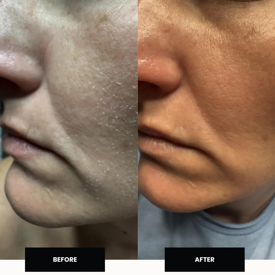 No. Unlike harsh scrubs or chemical peels, RiceShot™ is infused with hyaluronic acid and rice amino acids, which hydrate as they exfoliate. Leaving your skin soft and plump, not tight or dry.